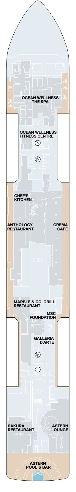Hier finden Sie Deckpläne, Schwerpunkte und Ausstattungsmerkmale der einzelnen Decks – perfekt, um Kabinen, Restaurants und Freizeitbereiche der Explora IV zu vergleichen.