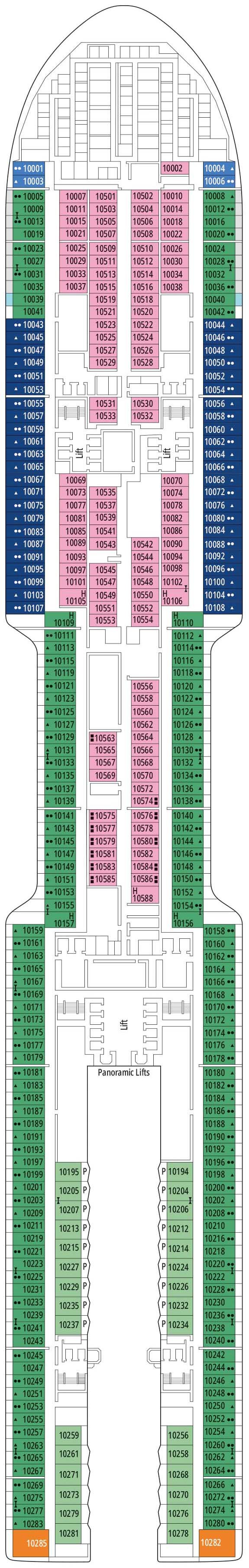 Hier finden Sie Deckpläne, Schwerpunkte und Ausstattungsmerkmale der einzelnen Decks – perfekt, um Kabinen, Restaurants und Freizeitbereiche der MSC World Asia zu vergleichen.