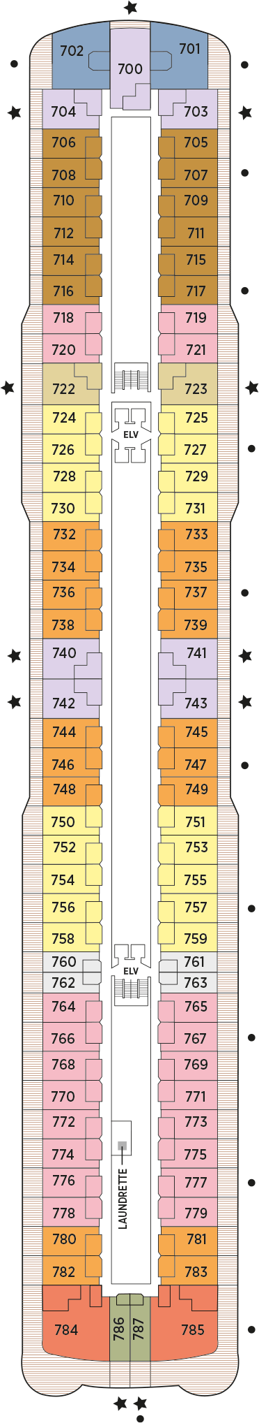 Hier finden Sie Deckpläne, Schwerpunkte und Ausstattungsmerkmale der einzelnen Decks – perfekt, um Kabinen, Restaurants und Freizeitbereiche der Seven Seas Splendor zu vergleichen.