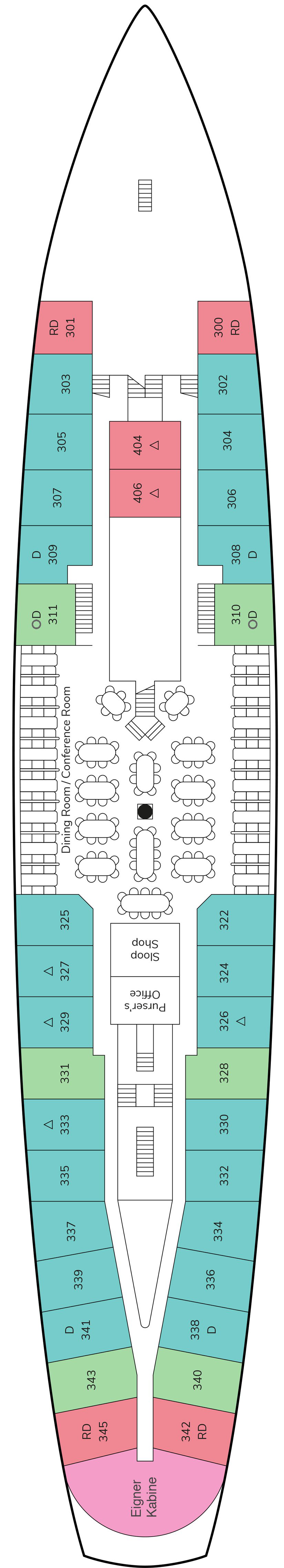 Hier finden Sie Deckpläne, Schwerpunkte und Ausstattungsmerkmale der einzelnen Decks – perfekt, um Kabinen, Restaurants und Freizeitbereiche der Star Flyer zu vergleichen.