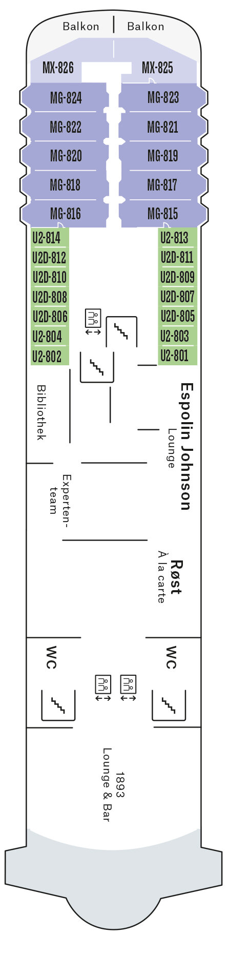 Hier finden Sie Deckpläne, Schwerpunkte und Ausstattungsmerkmale der einzelnen Decks – perfekt, um Kabinen, Restaurants und Freizeitbereiche der Trollfjord zu vergleichen.